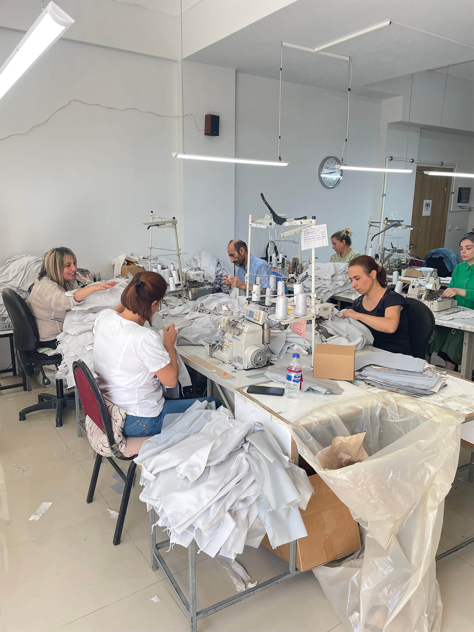 Ich reiste durch mehrere Länder Europas, um verlässliche Fabriken zu finden, denen ebenfalls an einer verantwortungsbewussten Herstellung gelegen ist. Nach etlichen Besichtigungen fiel die Entscheidung schließlich auf den Norden Portugals als neuen Produktionsstandort. Die dortigen Familienunternehmen überzeugten mit fairen Arbeitsbedingungen, ökologischem Bewusstsein und einer persönlichen Kommunikation, die die Detailabstimmung für die neue Schulkleidung deutlich erleichtern sollte.
